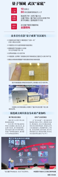 记者在大会举办期间采访了解到,武汉已成功研制国内首台原子量子计算原型机“汉原一号”并投入商业化应用,研发出我国首台600兆超导核磁共振波谱仪;星载铷原子钟装备北斗系统,105亿年误差不到一秒。武汉已实现量子保密通信城域网视频通话信号量子加密传输,并建成全球首条搭载量子保密通信系统的地铁线路。