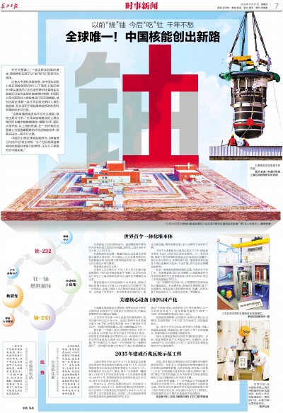 目前,项目团队正围绕加钍后的关键科学问题开展系统研究。他们表示,钍基熔盐实验堆的建成并首次实现钍铀核燃料转换,为其实验堆、研究堆、示范堆“三步走”发展战略从蓝图转化为路径清晰的“施工图”奠定了坚实的基础,也为中国率先实现钍基熔盐堆的工业应用提供核心科学技术支撑。