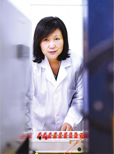 武汉科技大学教授丁文红在实验室记录试验数据。