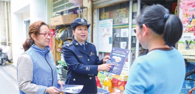 湖北省“三八红旗手”、武昌区公安分局水果湖派出所民警全凌雅在社区开展反诈宣传。