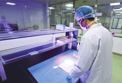 黄陂区分局执法办案管理中心DNA实验室内,法医陈建旗利用光源发现提取痕迹物证。