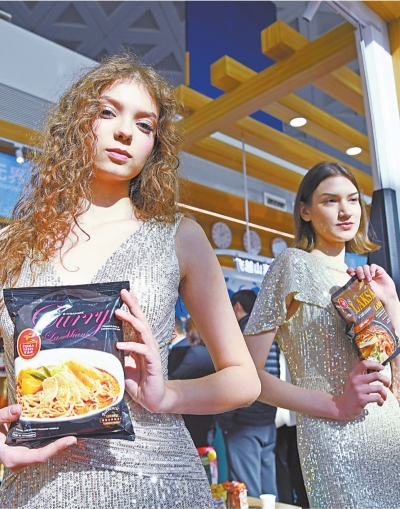 白俄罗斯模特在天河机场“世界超市”展示商品。