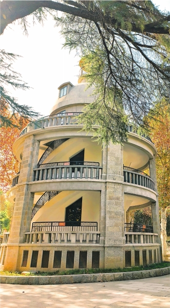 张公亭位于中山公园中区,始建于1933年,为纪念在武汉近代化建设过程中发挥重要作用的张之洞而建。建筑主体为拜占庭式圆形塔楼,地上四层、地下一层,一、二层设环绕回廊,三、四层为穹顶及观景结构,顶部为圆亭。建筑设计融合西式塔楼形态与园林审美,是中山公园历史风貌的重要组成部分,具有较高的文化价值和建筑价值。