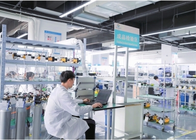 敢为科技生产车间成品检验区,技术人员正在进行产品检测。