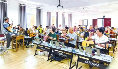 武汉老年大学吉他班学员弹唱《龙的传人》。