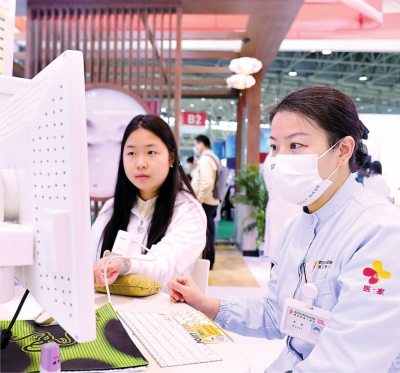世界大健康博览会上,市民体验电子腕搭把脉。