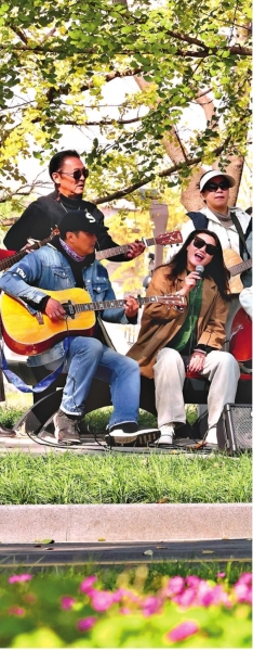 林间暖阳下,市民以弦音作笔、歌声为墨,谱写幸福乐章。