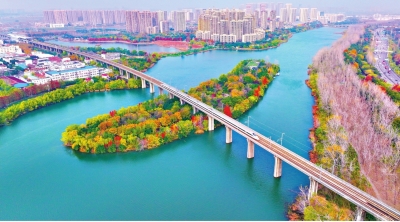 一列由汉口开往孝感方向的城际高铁穿越东西湖区将军街道黄塘湖,与初冬的景色混然一体,形成一道独特的风景。