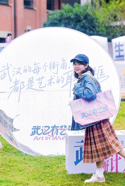 在汉口历史风貌区平和坊,市民感受不同艺术形式的独特魅力。