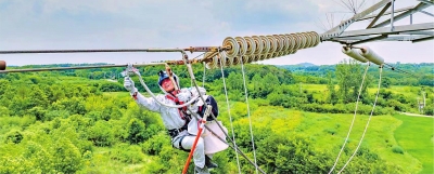 国网武汉供电公司输电运检人员在220千伏岳孙一回高压输电线路上开展紧急“消缺”施工。