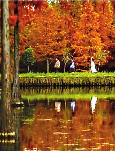 游玩的孩子们最感兴趣的是池杉,为了适应水中环境,树干在与水面相接部分形成了“啤酒肚”,秋冬水位下降能看得十分分明。“原来它们已经有50多岁了。”正在游玩的一位小游客听完介绍后,惊讶不已。