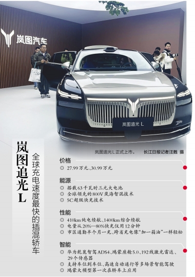 长江日报讯(记者汪甦)12月10日,冬夜被一束“追光”点亮。在网友的“武汉古斯特”“劳斯莱光”呼声中,岚图汽车今年的压轴之作——岚图追光L正式上市,两款车型价格分别为27.99万元与30.99万元。这是岚图在MPV、SUV接连走红后,正式叩响豪华轿车市场的大门。