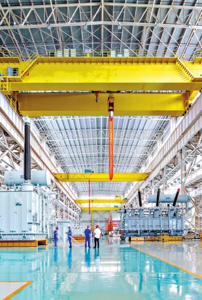 正泰武汉工厂变压器总装车间宽敞明亮。