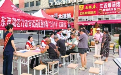 今年3月,东西湖区行政审批局在舵落口大市场设置“经营主体登记服务点”,已累计办结各类业务近千件。今年4月,“流动政务点”集中为金银湖街道“白马泾公园配套服务提升”项目入驻商户提供套餐式、定制化的证照办理服务。“政务列车”开进东西湖区人民医院,为医护人员提供“打包审核、批量发证”的“一站式”服务。