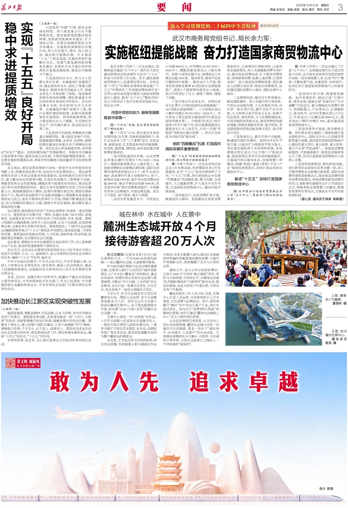 1 头版 2 要闻 3 要闻 4 全力打造“五个中心” 全面建设现代化大武汉 5 要闻 6 要闻 7 城事 8 在场▪牢记嘱托 支点龙头 奋勇争先 9 时事新闻 10 大地 11 超级课堂 12 超级课堂