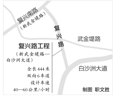 复兴路工程是白沙洲片区路网的重要组成部分,是武汉市重点建设的交通主干道。道路贯通后,将大大便利周边世纪新长江、堤东社区、八铺街等多个小区居民出行,显著改善区域交通环境。