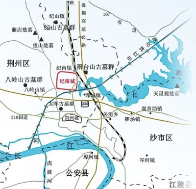 楚纪南故城(以下简称纪南城),位于湖北省荆州市纪南生态文化旅游区纪南镇,南距荆州城5公里、长江10公里,北距纪山约25公里,东北距雨台山1公里,东南距鸡公山遗址2.5公里。