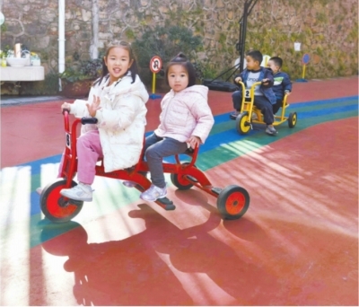 华中师范大学附属幼儿园,混龄班的孩子们进行户外活动。