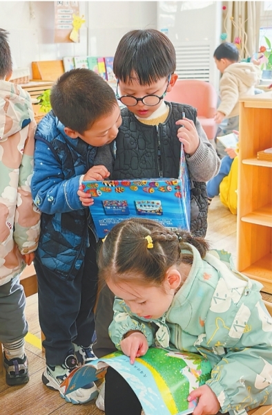 混龄班的孩子一起读绘本。