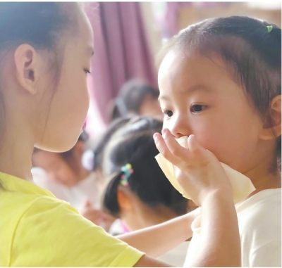 空军军医大学西京医院幼儿园班主任叶倩认为,混龄班的大孩子会自发帮助小孩子,小孩子也能从大孩子的行为中获得成长。但由于年龄差异,他们有不同的认知水平、兴趣爱好和行为习惯,这对教师组织各项活动提出了不小的挑战。她表示,混龄班的教师格外需要敏锐的观察力,及时发现孩子的需求,还要有能力引导各年龄段孩子和谐共处,要善于寻找独一无二的“成长配方”。