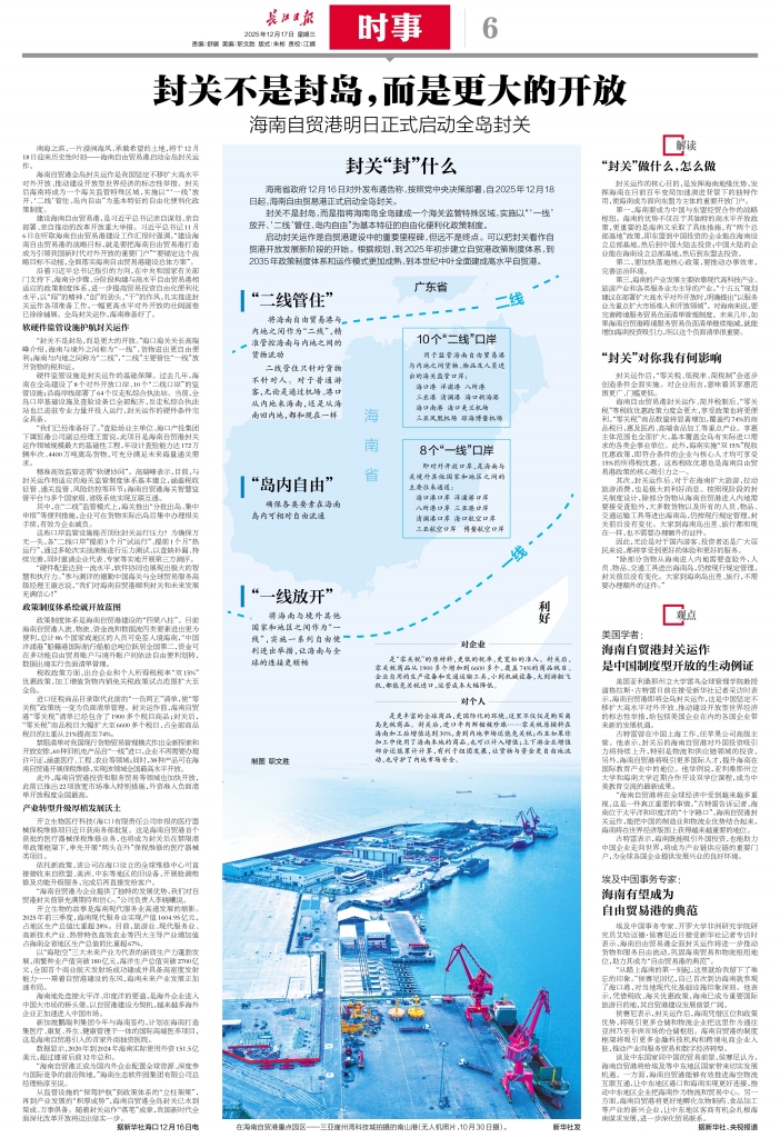 海南自贸港封关运作 是中国制度型开放的生动例证