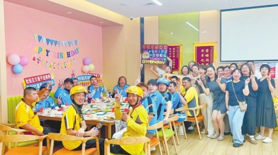 华锦社区为外卖小哥过生日。