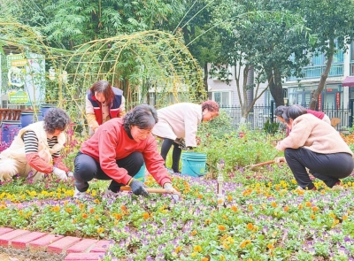 华锦社区志愿者扮靓“拼花花”园。