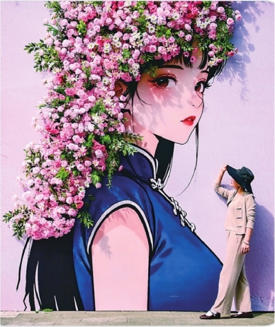 邾城街头一景——簪花姑娘。