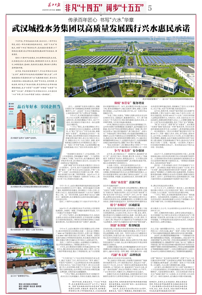 武汉城投水务集团以高质量发展践行兴水惠民承诺