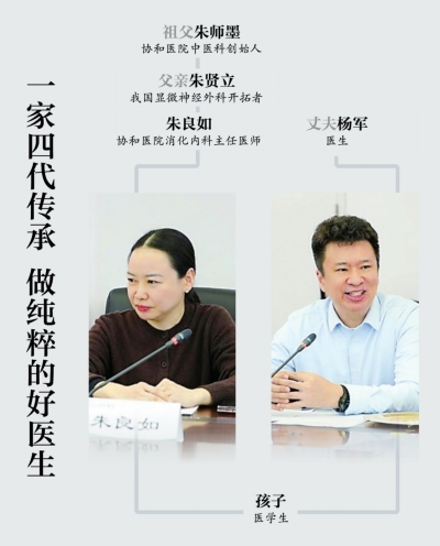 而这份深深的医者情怀,可以追溯到更远的时光。朱良如的祖父朱师墨,是武汉协和医院中医科的创始人,常常为贫困患者亲手煎药、送药上门。她的父亲朱贤立,是我国显微神经外科开拓者,年近五十仍远赴瑞士求学,每天坚持八九个小时在显微镜下苦练。学成归国后就马不停蹄地举办学习班,制作教学录像,在全国点燃了显微神经外科的星星之火。