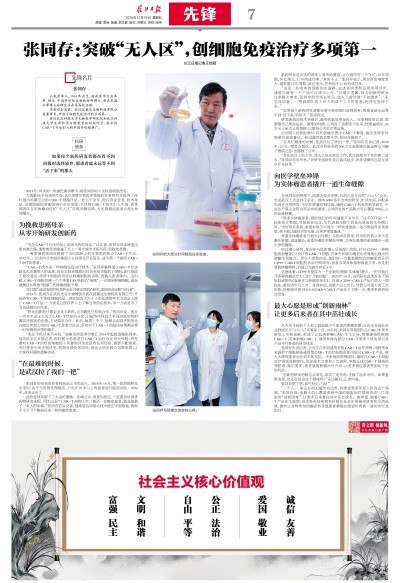 这给张同存留下了永远的遗憾。悲痛之余,他更加坚定,一定要加快推进药物研发进程,尽快让国产CAR-T药物上市。“救活一名癌症患者,就是拯救了一家人的幸福。”张同存告诉记者,他希望这项前沿技术能在中国落地,救助千千万万个像他母亲一样的癌症患者。