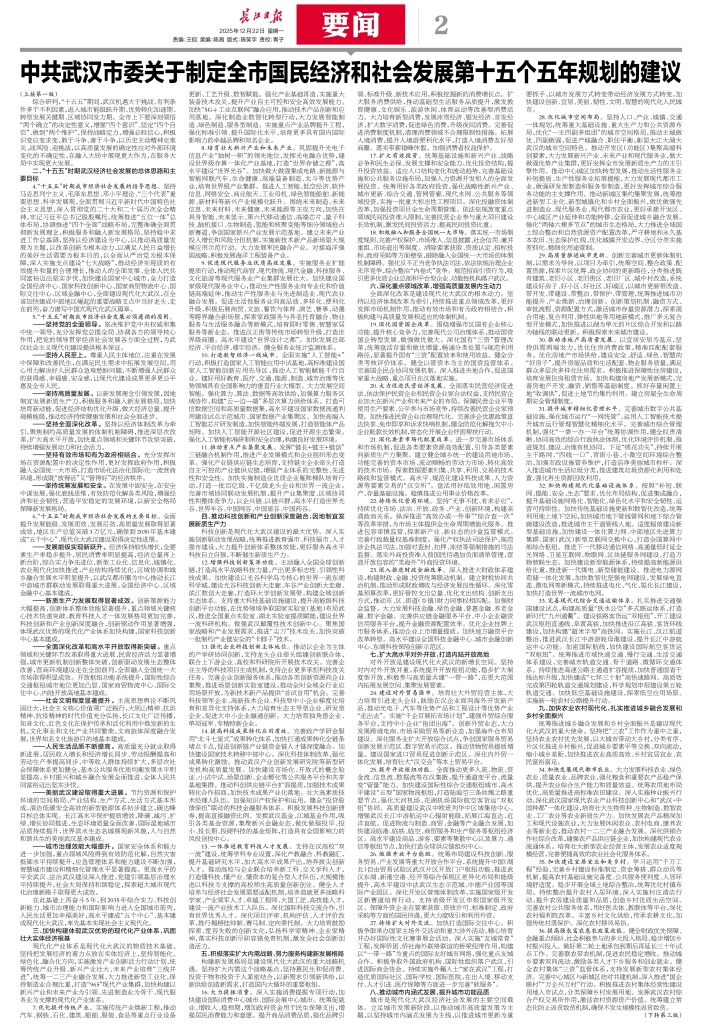 中共武汉市委关于制定全市国民经济和社会发展第十五个五年规划的建议