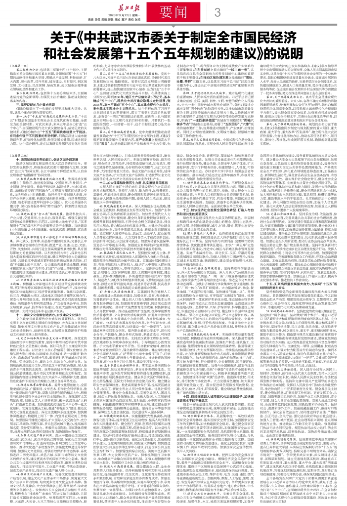 关于《中共武汉市委关于制定全市国民经济和社会发展第十五个五年规划的建议》的说明
