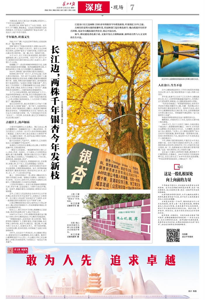 长江边,两株千年银杏今年发新枝