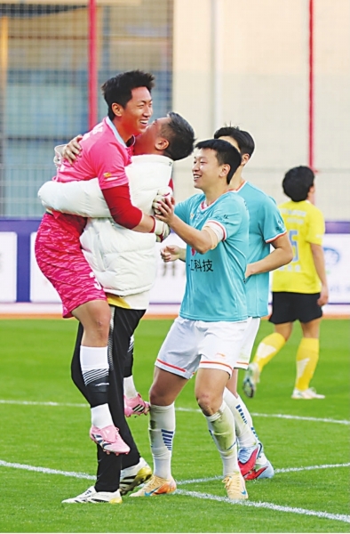 28日中午,塔子湖体育公园1号足球场,蔡晟、张斌、闫毅、常卫魏、邓卓翔等武汉知名退役球员组成的“传承明星队”,与姜利勋、余田乐、夏子豪、熊继政、王康等在全运会上取得佳绩的年轻球员组成的“未来之星联队”进行了一场精彩的表演赛。武汉不同年龄段的代表性球员,在这一刻进行了一次意义非凡的传承。