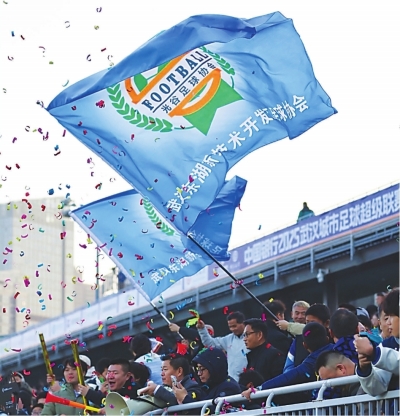 “武体,战斗!”“东湖高新,加油!”28日下午3时,塔子湖体育公园1号球场看台上已座无虚席。主裁判一记清脆而响亮的哨声,吹响了汉超城区组冠军东湖高新区队与高校组冠军武汉体育学院队之间的超级杯“双雄会”序幕,也点燃了现场球迷的热情。加油呐喊声与锣鼓助威声此起彼伏。