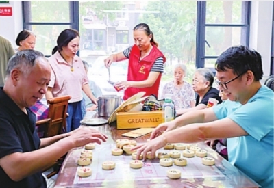 东湖新城社区党群服务中心活动室里,居民们愉快度夏。