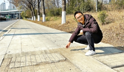 12月16日,周先生送孩子上学时,注意到蔡甸区新天大道汉新街路口附近有一处机动车道破损、多处人行通道地砖破损。于是,他拍下视频,并发到网上。