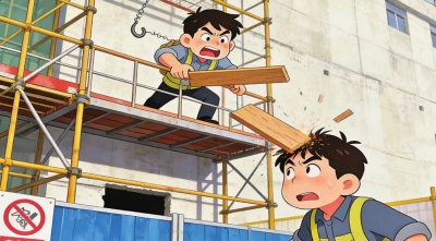 (3)作业人员从高处向下抛掷建筑材料、杂物、建筑垃圾或向上递送工具;