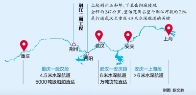 12月29日,随着长江中游荆江河段航道整治二期工程(以下简称荆江二期工程)主体基本建成,长江干线武汉至重庆段全长1277.5公里的4.5米水深航道实现全线贯通,5000吨级船舶可常年从武汉直达重庆,这标志着长江黄金水道通航能力实现整体跃升。
