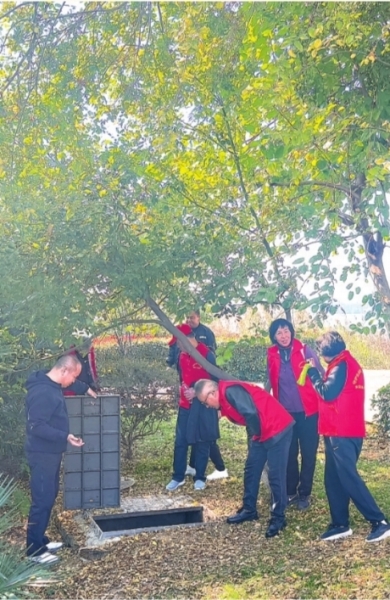 东湖风景区“银发护湖队”队员们仔细检查东湖沿岸管线。