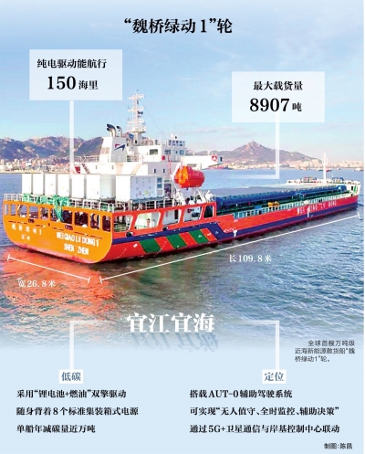 长江日报讯(记者陈晓彤 胡孙华 通讯员徐丹)12月29日,由武汉理工大学绿色智能江海直达船舶与邮轮游艇研究中心研发设计、深圳魏桥新能源船舶有限公司持有的全球首艘万吨级近海新能源散货船“魏桥绿动1”轮,在山东滨州无棣创业码头首航,标志着我国近海新能源船舶研发及应用实现里程碑式突破。