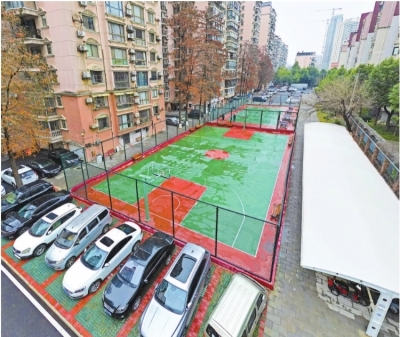 在焕然一新的健身区,翻新的广场铺着防滑地砖,儿童乐园装着彩色橡胶垫,网球场、羽毛球场铺着绿色塑胶地垫、四周围网崭新,乒乓球台旁传来居民打球的笑声,“居民代表都参与了改造。”居民范植红自豪地说。