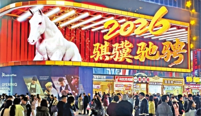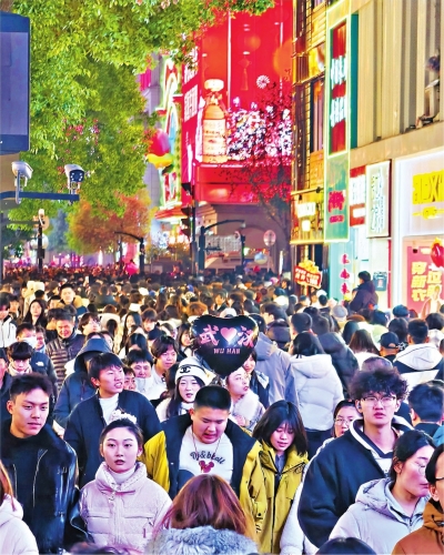 江汉路步行街上一派新年的欢乐气象。