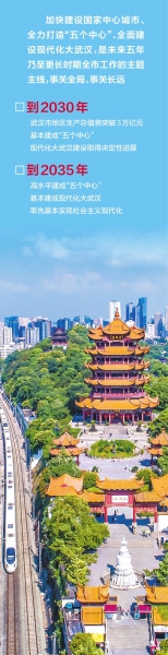 在国务院批复的《武汉市国土空间总体规划》中,赋予武汉“五个中心”功能定位。在省委“十五五”规划建议中,也明确支持武汉加快建设国家中心城市,全力打造“五个中心”,更好发挥龙头引领作用。