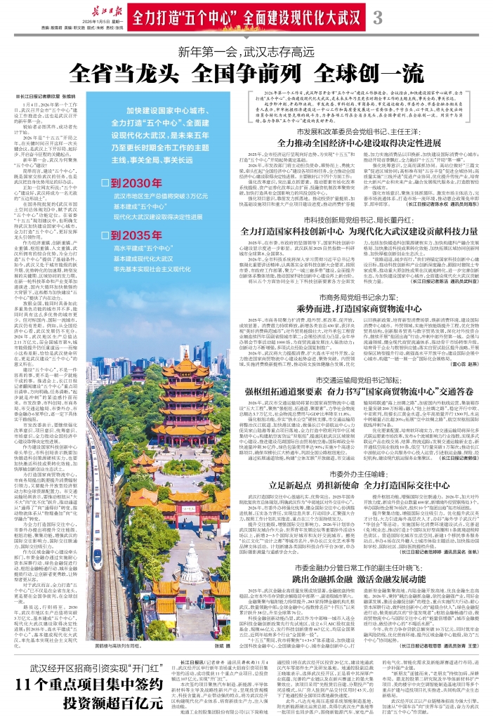 3 全力打造“五个中心” 全面建设现代化大武汉