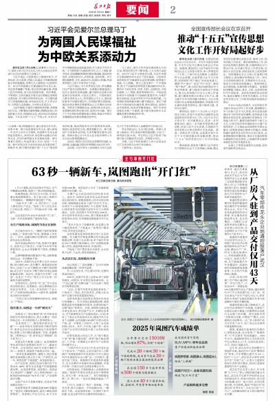 近年来,武汉经开区坚持整车与零部件并重,推动汽车产业向“整零协同”转型,汽车零整比提升至0.8∶1。面向“十五五”,武汉经开区将牢牢抓住汽车“当家产业”,以更大力度抓好招商引资和项目建设,加快打造国家重要的汽车产业基地。