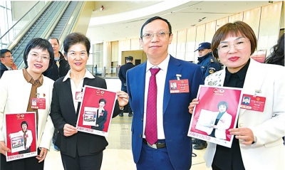 1月6日,代表委员们展示与珍贵老照片的合影。