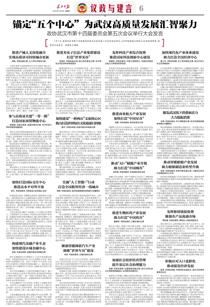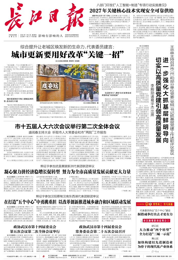 1 头版 2 要闻 3 2026武汉两会·乘势而上 续写新篇 4 2026武汉两会·乘势而上 续写新篇 5 2026武汉两会·乘势而上 续写新篇 6 议政与建言 7 升腾发展气场 聚焦武汉两会 8 武汉体育