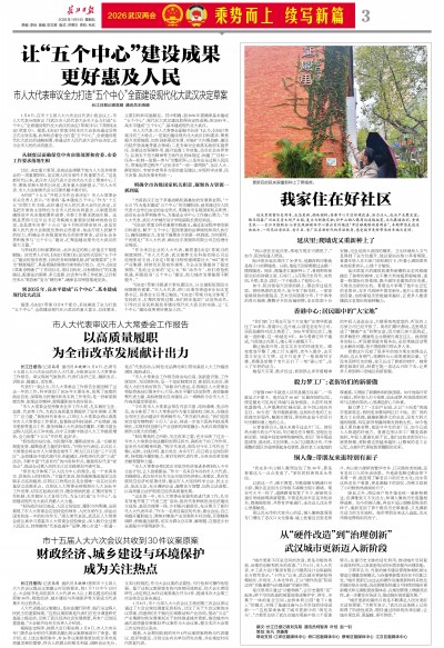 “城市更新不仅是空间的改造,更是功能的再造、治理的创新和民生的改善。”1月6日,市人大代表、中工武大设计集团有限公司建筑设计总院副院长万莉军表示,“十四五”以来,武汉城市更新坚持精细化、市场化、人本化导向,正从“硬件改造”阶段迈向“功能重塑与治理创新”的新时期。